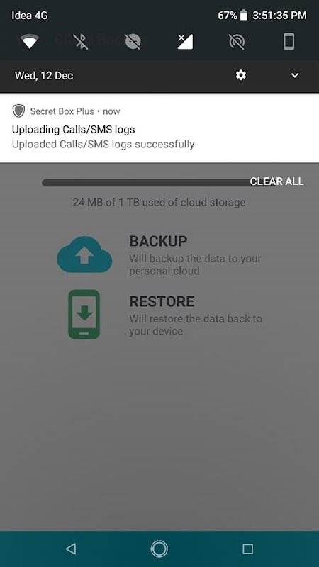 - Up to 1 TB cloud storage for online backup and restore for SMS, Call logs, Contacts and Media