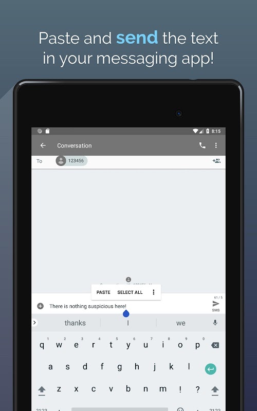 Sie können ein Kennwort festlegen, und verschlüsseln Sie Ihre Nachricht mit AES-256, eine militärisch-Grad-Verschlüsselung. Sie können sicher sein, dass Ihre Botschaft sicher ist, selbst wenn es abgefangen wird!