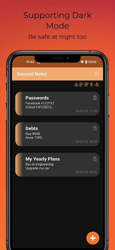 🌙 Dunkler Modus: Passen Sie Ihr Notizenerlebnis mit dem eleganten und optisch ansprechenden Dunkelmodus individuell an. Ganz gleich, ob Sie das Mitternachtsöl verbrennen oder einfach nur eine elegante Ästhetik bevorzugen, Secure Notes passt sich Ihrem bevorzugten Stil an.
