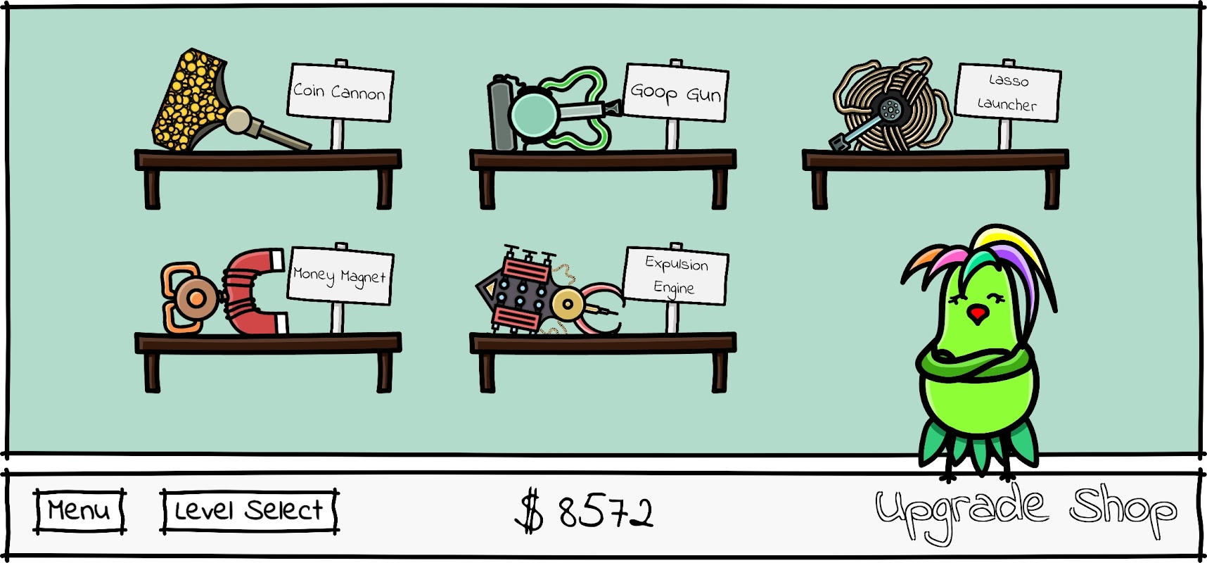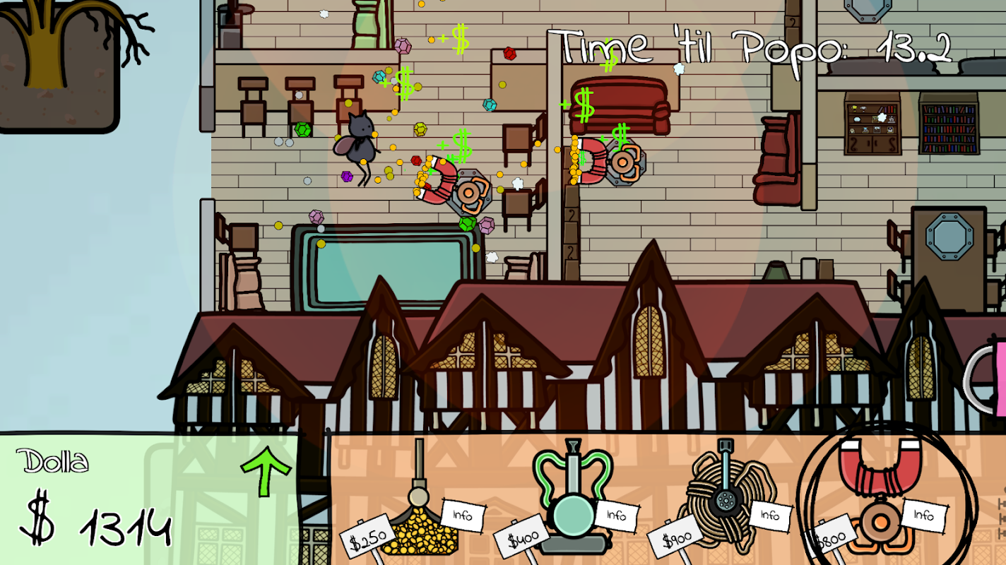 You can defend the house with the Goop Gun which slows the thief, the Coin Cannon which takes money from the thief but costs money to use, the Lasso Launcher which traps the thief for a short time, the Money Magnet which takes money from the thief without costing anything to run and the Expulsion Engine which teleports the thief back outside the building! Of course, each turret is upgradable in the turret upgrade shop.