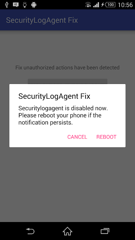 If you have rooted your Samsung, you will see a notification on top "Unauthorized actions have been detected" . This application will hide this notification by disabling securitylogagent.