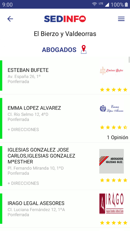 Laden Sie die App kostenlos Sedinfo und haben alle Informationen von Unternehmen, Freiberufler und öffentliche Dienstleistungen in Ihrer Stadt / Region (*) auf Ihrem Mobil. (Verfügbar ab Version 4.0 von Android)