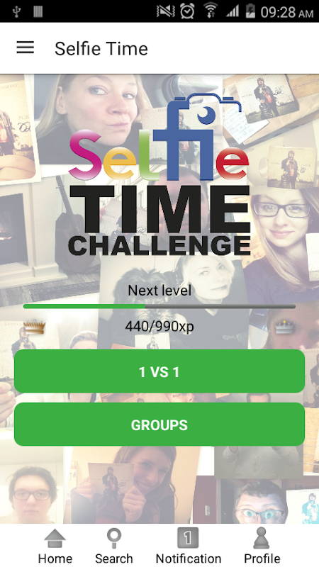Do you want to challenge your entire friend? Well you can do so too!! Selfie Time challenge has groups, so just create a group or join a group and compete with your friends or people worldwide, you decide. Be the winner of that worldwide group and decide at what moment everyone on that group has to take a selfie!