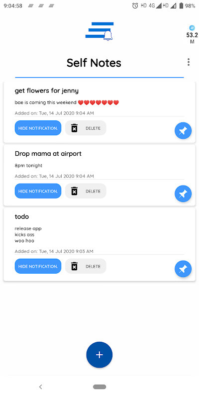 Glücklicherweise bieten Ihnen Selbstnotizen diese erstaunliche Funktion, mit der Sie Ihre Notizen in Ihrer Benachrichtigungsleiste anheften können. Sie können einfach eine Notiz erstellen und die Pin-Benachrichtigungsschaltfläche aktivieren, um Ihre Notiz in die Benachrichtigungsleiste zu verschieben, und schon kann es losgehen! Egal, ob Sie ein Spiel spielen, auf einer Website einkaufen oder mit Ihren Freunden chatten, wischen Sie einfach nach unten, um Ihre To-Do-Liste und Erinnerungen anzuzeigen.