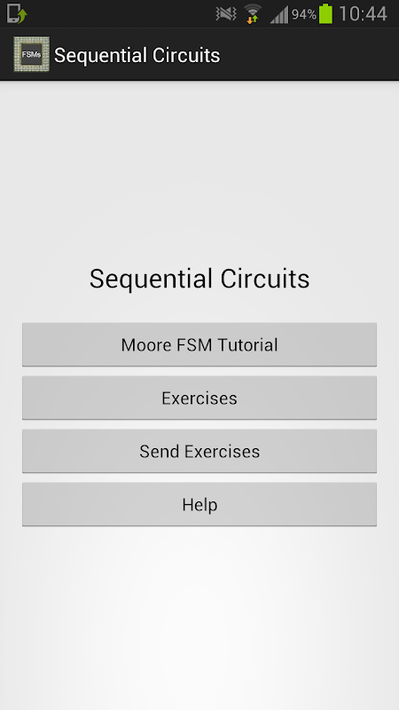 Sequentielle Schaltungen, ist ein Bildungs-Anwendung, die eine Reihe von Problemen zur elektronischen sequentiellen Schaltungen (Finite State Machine) bietet. Es wurde entwickelt, um die Möglichkeit der Änderung der üblichen pdf Führer Problem für eine mobile interaktive alternative testen.