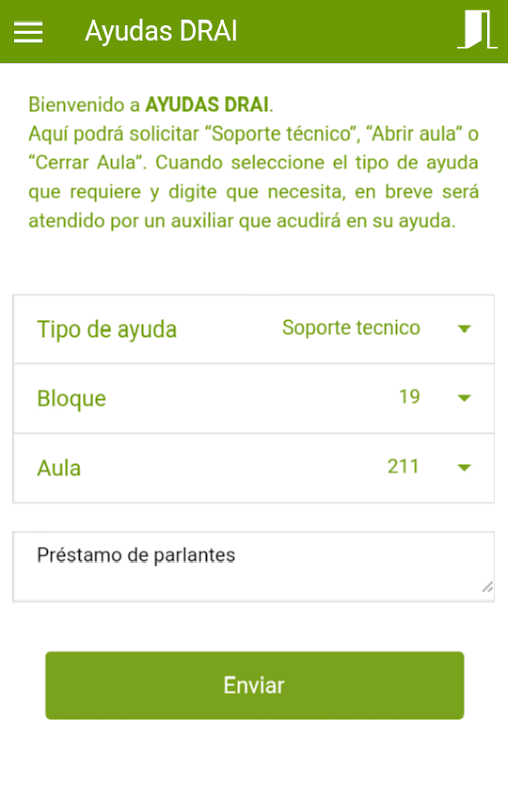 DRAI Hilfe: Durch diese Anwendung können Sie die Öffnung anfordern. Schließung und Unterstützung im Klassenzimmer.