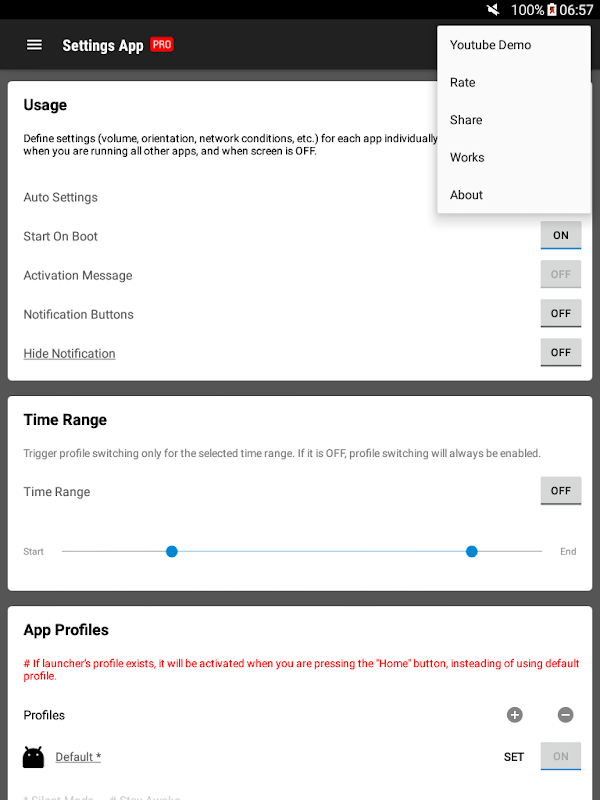 Über Einstellungen App Pro