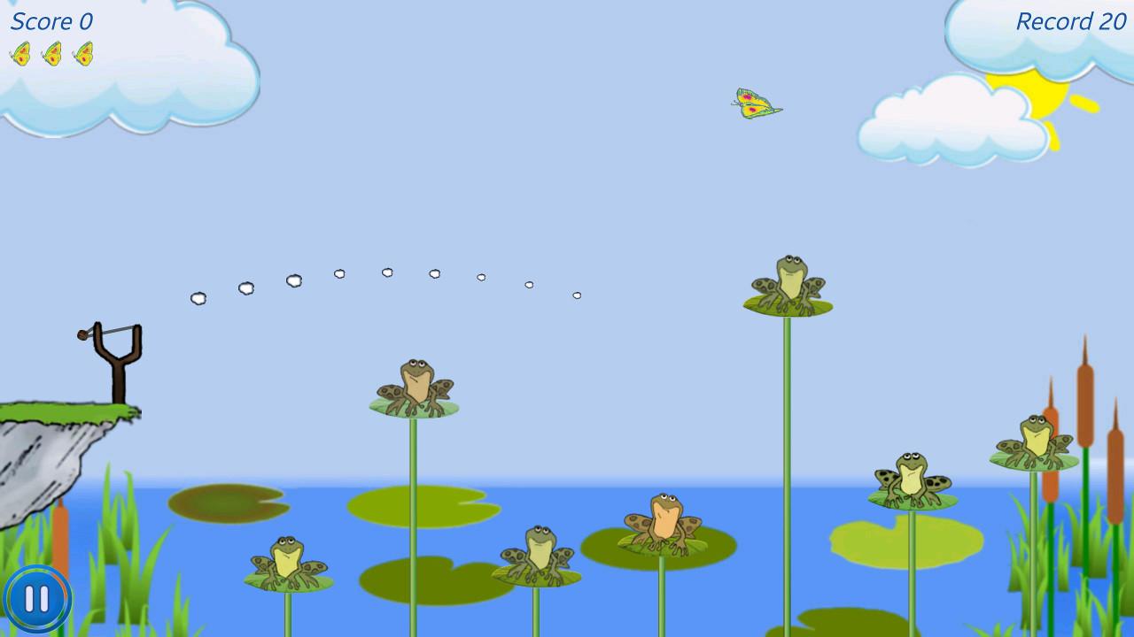 Seven Frog ist ein angenehmer Zeitvertreib, in dem Ihr Ziel ist es, die Frösche im Teich Schmetterlinge essen zu verhindern. Die Frösche sind auf den Blättern gehässigen schnell wachsenden, dass der Aufstieg aus dem Teich der Höhe sie fliegen Schmetterlinge sitzen. Ihre Aufgabe ist es, die Schmetterlinge aus der Gier der Frösche mit Ihrer Schleuder verteidigen. Um zu verhindern, sie zu essen haben, um die Frösche zu werfen Steine getroffen. Wenn die Frösche betroffen sind versinkt im Teich und versuchen eine neue Aufzüge. Um die Steine mit einer Schleuder zu werfen müssen den Pfad am besten geeignet, sie zu schlagen. Um den Pfad zu bestimmen, müssen Sie den Index mit dem Stein Einstellung Winkel und Stärke ziehen. A-Dur Schwierigkeitsstufen, die Blätter, die Frösche sind noch schneller, erhöht das Leben schwieriger für die schönen Schmetterlinge zu halten.