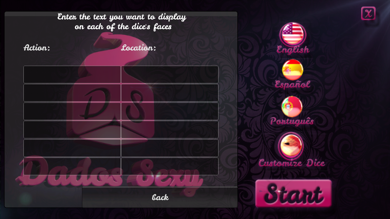 We suggest choosing a romantic, then, you will be taken by sound and suggestive indications of the dices, they will guide you on what to do .. So you may enjoy with caresses filled with eroticism and sensuality