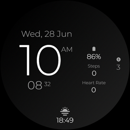 Bleiben Sie mit Ihren Fitnesszielen auf dem Laufenden, da Shadowfade mühelos Ihre Schrittzahl, Herzfrequenz und den Batterieprozentsatz anzeigt. Egal, ob Sie Ihre täglichen Aktivitäten verfolgen oder Ihre Gesundheit überwachen, mit diesem Smartwatch-Zifferblatt sind Sie auf einen Blick informiert.