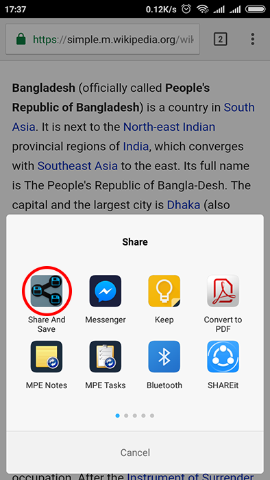 & # 8226; Wählen Sie Teilen und Speichern aus der App-Liste.