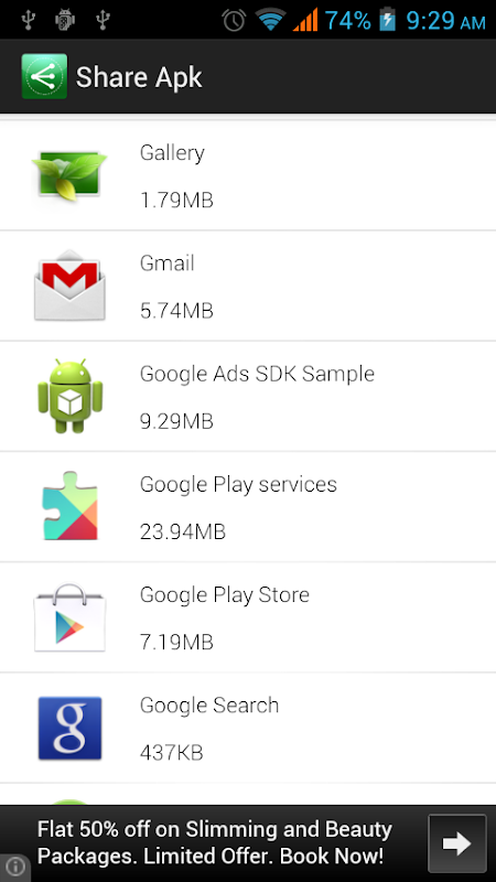 "Share Apk" is the app for you. You can backup / share the application within seconds.