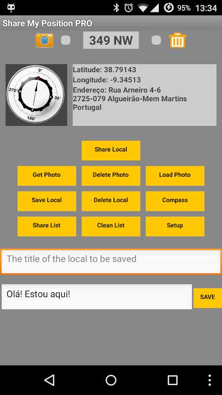 App que partilha a posição actual do smartphone, enviando uma mensagem na rede a sua escolha, com um link para o Google Maps. Esta app serve para partilhar-mos a nossa posição, mas também serve para nos informar do local onde nos encontramos. Como podemos salvar varios locais numa lista, que podemos aceder mais tarde e partilhar qualquer local existente nessa lista. Também temos acesso a uma bússola com os vários parâmetros a ela referentes.