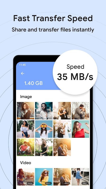 - Transfer & share all kinds of files like photos, videos, music, APK, or any other files.