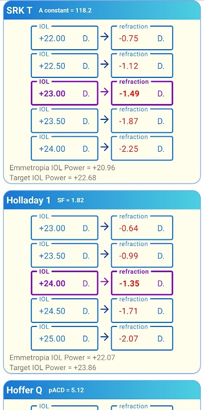 Mit dem PREMIUM-Plan erhalten Sie eine vollständige Analyse der IOL-Stärke für jede Zielrefraktion und können den Chirurgenfaktor (SF) und die personalisierte ACD (pACD) für jeden Fall berechnen.
