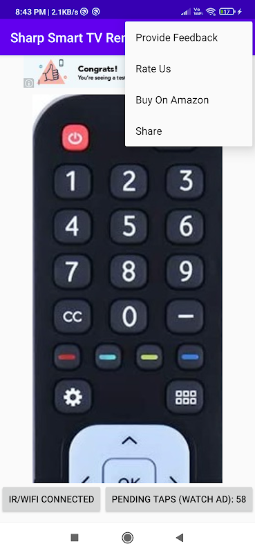 Sharp Smart Tv Remote Control 1.26