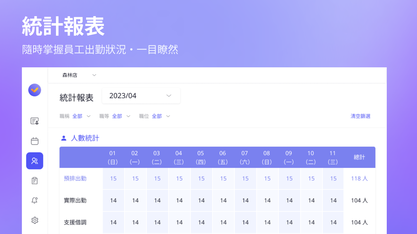 Verwalten Sie Anwesenheits- und Schichtplanung ganz einfach mit einem Klick und machen Sie die Arbeit der Filialleiter effizienter und angenehmer.