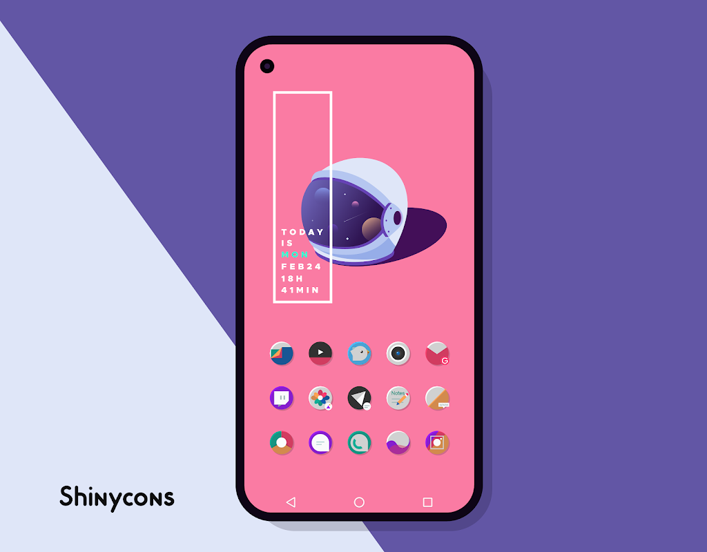 This is a round-shaped icon pack with shadows and lights, a unique and bright color palette with a minimalist style.