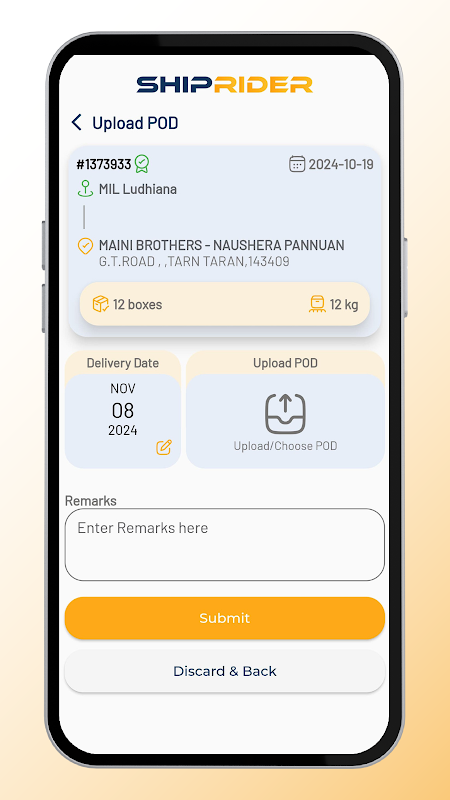 ShipRider - Eternity's Rider App - zur Verwendung durch Trucker, Fahrradfahrer, die ihnen zugewiesene Liefer- und Abholtransaktionen durchführen. Durch die Digitalisierung der Logistikwelt und die Spezialisierung auf ländliche Logistik ermöglicht Ship Rider den Kunden des Unternehmens, Zugang zu Echtzeit-Verfolgung und Sichtbarkeit des Standorts ihrer Sendung und der ungefähren Lieferzeit zu erhalten.