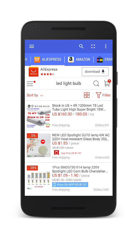 Shop & Compare for Android allows users to search over 100 name brand stores simultaneously and be taken directly to their product listings. Users save time by entering a single search term and not having to open multiple apps or manually go to several websites to find and compare product.