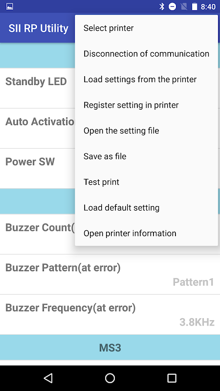 Diese App ermöglicht die Voreinstellung der Funktionseinstellungen der POS-Drucker der RP-Serie von Seiko Instruments Inc..