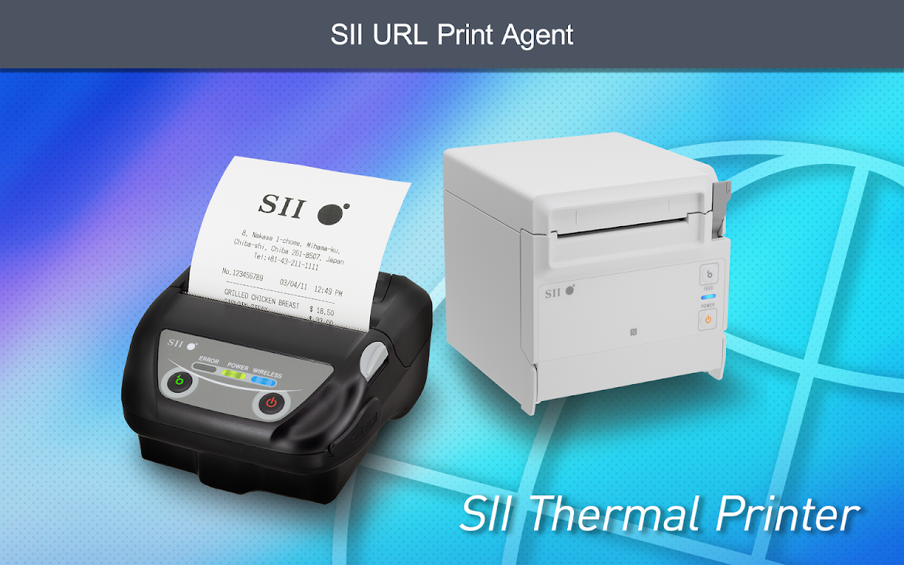 SII URL Print Agent ist eine Anwendung, die PDF-Dateien mit Thermodruckern von Seiko Instruments (SII) druckt. Drucken Sie auf Druckern, die über Bluetooth, WLAN oder USB verbunden sind, indem Sie diese Anwendung über ein URL-Schema über Ihre Android-Anwendung starten und PDF-Dateidaten übergeben.
