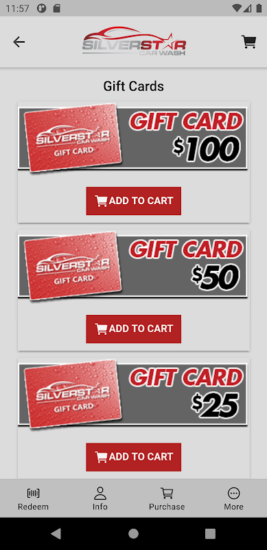 Silverstar is the new, easy-to-use app that provides you with access to the area’s finest car washes. Use our mobile app to create your own secure account to purchase individual washes, book of washes, gift cards and to join subscription based wash clubs. You can add a credit card to your mobile app and make future purchases with just a card on file without having to open your wallet again. At the car wash, you can redeem your purchased wash remotely without rolling down your window to touch the screen. Simply enter your wash code or scan the barcode displayed in the app. You may also view a visual history of your purchases including date, time, service purchased, and remaining washes if a wash book is purchased. Silverstar combines convenience and technology to keep your vehicle sparkling!
