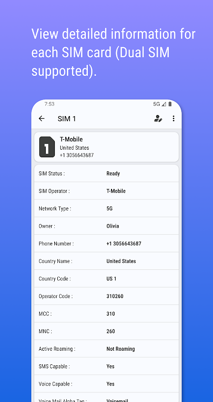 ✅ Dual-SIM-Unterstützung: Erhalten Sie detaillierte Informationen zu beiden SIM-Karten in Dual-SIM-Geräten!