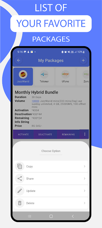SIM-Pakete Pakistan bietet Informationen zu allen Paketen aller Netzwerke (einschließlich JazzWarid, Ufone, Zong, Telenor, SCO, Onic, PTCL, JazzCash) Pakistans in einer App.