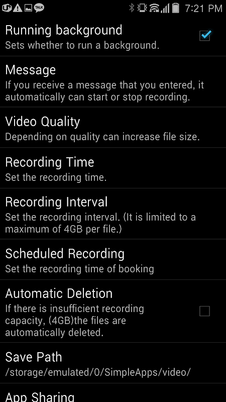 Diese App kann für Zwecke wie Blackboxen im Fahrzeug oder Videoüberwachung verwendet werden.