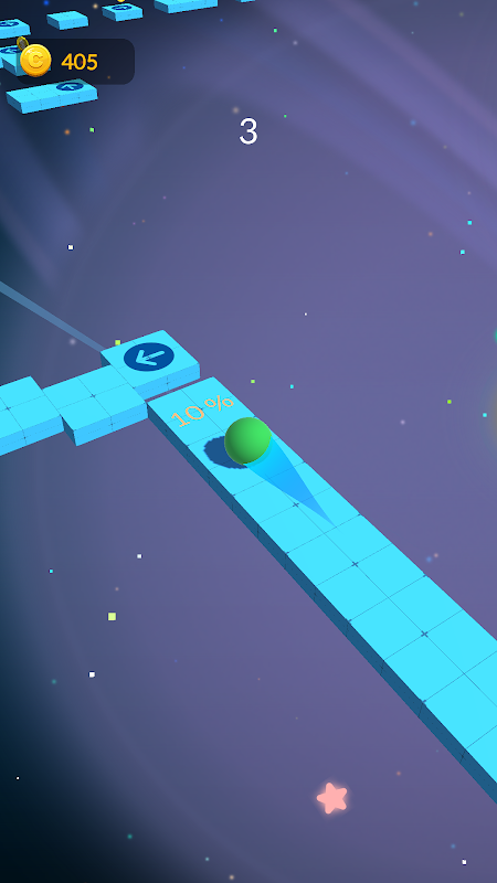 Berühre den Bildschirm, wenn der Ball rollt und auf dem Pfeil ist.
