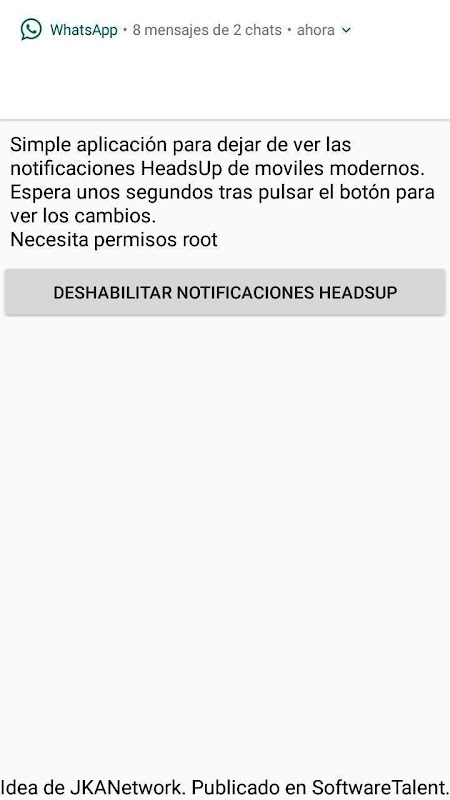 Aplicación que es capaz de quitar y poner esas molestas (Al menos para nosotros) notificaciones de estilo "HeadsUp" que entraron desde Android Lollipop, para que puedas usar tu móvil sin que esas notificaciones te molesten.