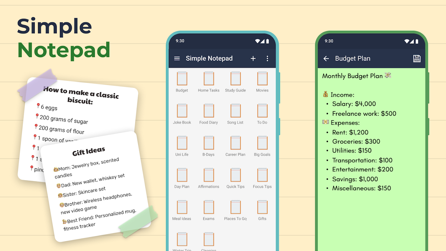 📘 Einfache Notiz-App. Mit diesem Notizblock verfügen Sie über alle notwendigen Tools, ohne dass Sie durch In-App-Käufe überrascht werden müssen.