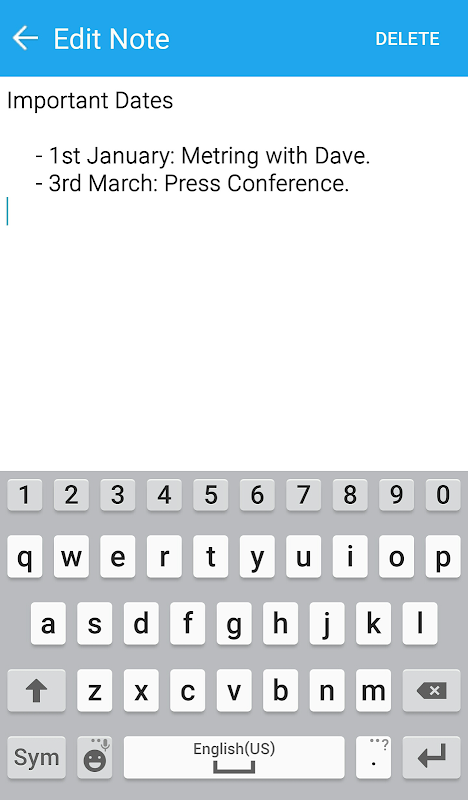 Simple Notes is an easy way to keep Notes, Ideas, Lists and much more on your Device for free. It is Fast and Easy, Simply open it up, and Add a Note, never forget an Idea again.