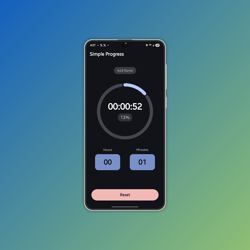 Simple Progress ist ein minimalistischer Fortschrittstimer, mit dem Sie die Zeit auf einen Blick im Blick behalten. Starten Sie einen Countdown mit einer festgelegten Dauer (z. B. 2 Std. 30 Min.) oder einer bestimmten Uhrzeit (z. B. 17:00 Uhr) und sehen Sie sofort den Fortschritt von jetzt bis dahin.
