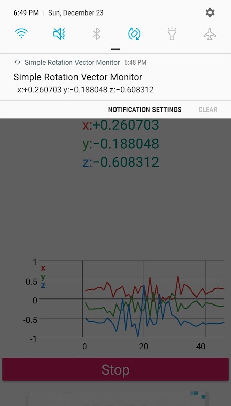 Sie können auch Rotationsvektorkomponenten im Benachrichtigungsfach anzeigen.