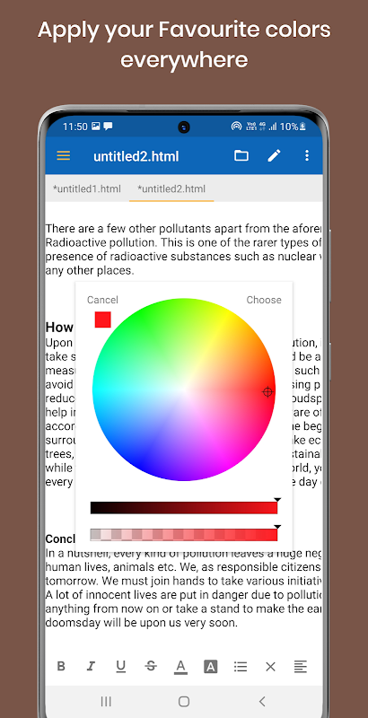 Mit dem Texteditor können Sie Ihre vorhandene Textdatei importieren. Durchsuchen Sie einfach Ihren Telefonspeicher und wählen Sie Ihre Textdatei aus, und die App lädt sie in Sekundenbruchteilen. Damit können Sie Stil und Formatierung auf Ihre Datei anwenden, ohne die Originaldatei zu beeinflussen.