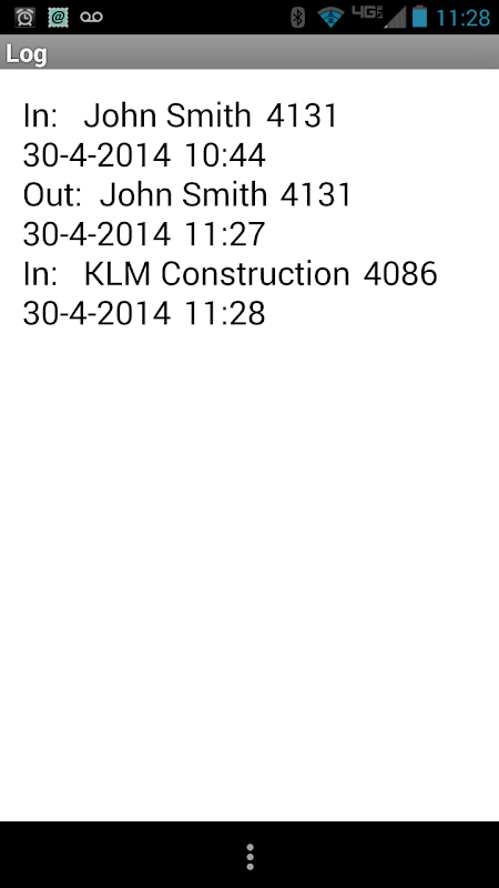 Rufen Sie das Menü auf dem Hauptbildschirm und stellen Sie Ihre Datums- und Uhrzeitformat Optionen. Dann geben Sie einfach den Namen des Jobs und Job-Nummer und drücken Sie Uhr ein. Wenn Sie mit dieser Arbeit fertig sind getroffen Uhr-out. Drücken Sie die Schaltfläche Protokoll, um alle Einträge anzuzeigen. Gehen Sie in das Menü in der Log-Bildschirm wird die Möglichkeit geben, das Protokoll zu löschen.