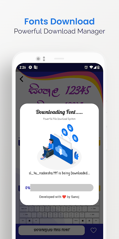Die App wurde so konzipiert, dass Sie ganz einfach eine Reihe Ihrer bevorzugten singhalesischen Schriftarten herunterladen können, die im gesamten Internet verstreut sind. Um Ihnen die Auswahl der benötigten Schriftdatei zu erleichtern, wurde die App so erstellt, dass Sie das Erscheinungsbild der Schriftdatei in der Anwendung sehen können. Darüber hinaus können Sie alle Details zur Schriftartdatei auf der Download-Seite sehen. Jeden Tag werden neue singhalesische Schriftarten in die Software eingeführt, und Sie können diese Schriftart für jedes Softwareprogramm verwenden, das Sie verwenden. Alle Schriftarten, die Sie herunterladen, werden in den Downloads-Ordner Ihres Android-Telefons heruntergeladen.