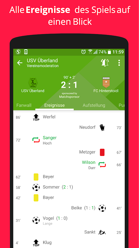Es bietet Sportvereine – im ersten Schritt Fußball – die einzigartige Möglichkeit, mit ihren Fans gezielter und schneller zu interagieren, d.h. ihnen kompakt die aktuellsten Informationen rund um den Verein mitzuteilen und sie auch live – also in Echtzeit – am Spielgeschehen teilnehmen zu lassen.