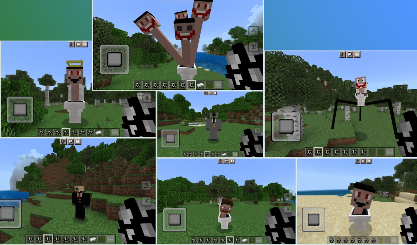 Vielen Dank, dass Sie sich für unseren kostenlosen Minecraft Skibidi Toilet Mod entschieden haben! Genießen Sie dieses gruselige Add-on mit Ihren Freunden oder Kollegen und tauchen Sie auf unvergleichliche Weise in die Welt von Minecraft ein. Vergessen Sie nicht, unsere anderen Add-ons, Mods, Karten, Skinseed, MC, Texturen, Minispiele und Skins mit dem Master-MC für Multicraft Bedrock Edition zu erkunden. Finden Sie öffentliche Toiletten und dringend benötigte Toiletten mit unserer WC-Finder-Funktion!
