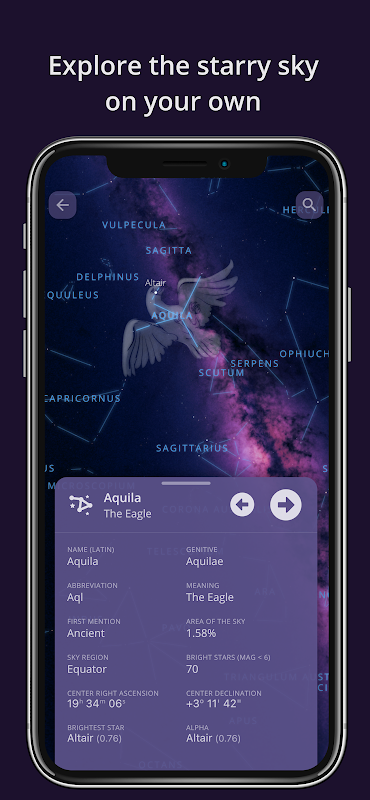 - 180 Levels lehren, trainieren und testen Sie Ihr Wissen über mehr als 150 hellste Sterne des Himmels.