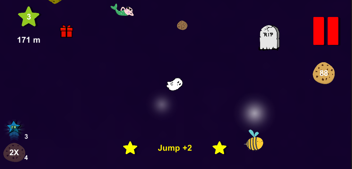 Eat cookies and fly as far as you can. Collect as many stars as possible to unlock characters and objects that give you the biggest boost. Protect yourself from balloons and bees that confuse you in your flight.