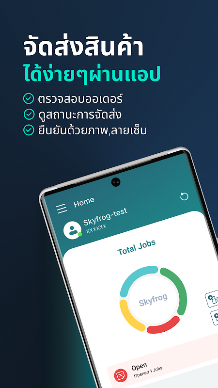 Die SKYFROG-Software unterstützt die Funktion (Proof of Delivery), die zur Verwaltung der Warenlieferung dient. Über das Web on the Cloud (SKYFROG-Website) können die Organisatoren Jobs erstellen und den Fahrern Aufgaben zuweisen. Bei erfolgreicher Arbeit kann der Fahrer Aufträge von den Organisatoren automatisch über Mobiltelefone erhalten. Das System sendet die Informationen zum Liefernachweis (Unterschrift mit Zeitstempel und/oder mit Zeitstempel versehenes Foto) sofort über die SKYFROG-Cloud an das Hauptbüro zurück.