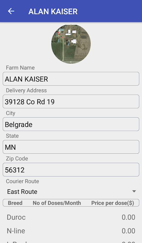 AiPartners has launched this Mobile application for AiPartners and Topigs Norsvin administration managers, salesmen and courier drivers to assist them in accessing data and performing various tasks. It is convenient, accurate and easy. The application allows users to view farm information including the farm name, delivery address, product needs and pricing. Users can see an aerial farm picture, product drop directions and location instructions with a picture of the specific drop site building and entrance door.