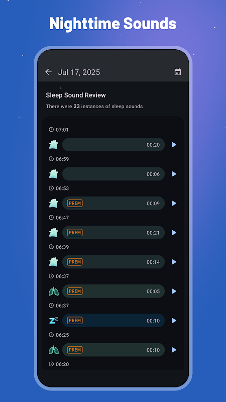 Analysieren Sie Ihre Schlafmuster mit KI-gestütztem Tracking, einschließlich Schlafphasen (leicht/tief/REM) und personalisierten Erkenntnissen zur Verbesserung Ihrer Schlafqualität.