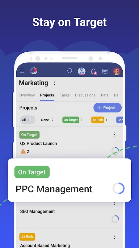 Slingshot vereinfacht die Verwaltung Ihrer Projekte, Teams und Prozesse für jedes Team – remote, hybrid oder vor Ort. Es hilft bei der Eigenverantwortung, Sichtbarkeit und Aufteilung von Aufgaben, sodass Teams und Manager den Fortschritt, potenzielle Blocker, Fälligkeitsdaten und den Status der täglichen Arbeit verfolgen können. Das Projektmanagement wird mit Slingshot leicht gemacht, sodass die Arbeit für verschiedene Arten von Unternehmen reibungslos abläuft – Marketingagenturen, interne Marketingteams und Projektmanager.
