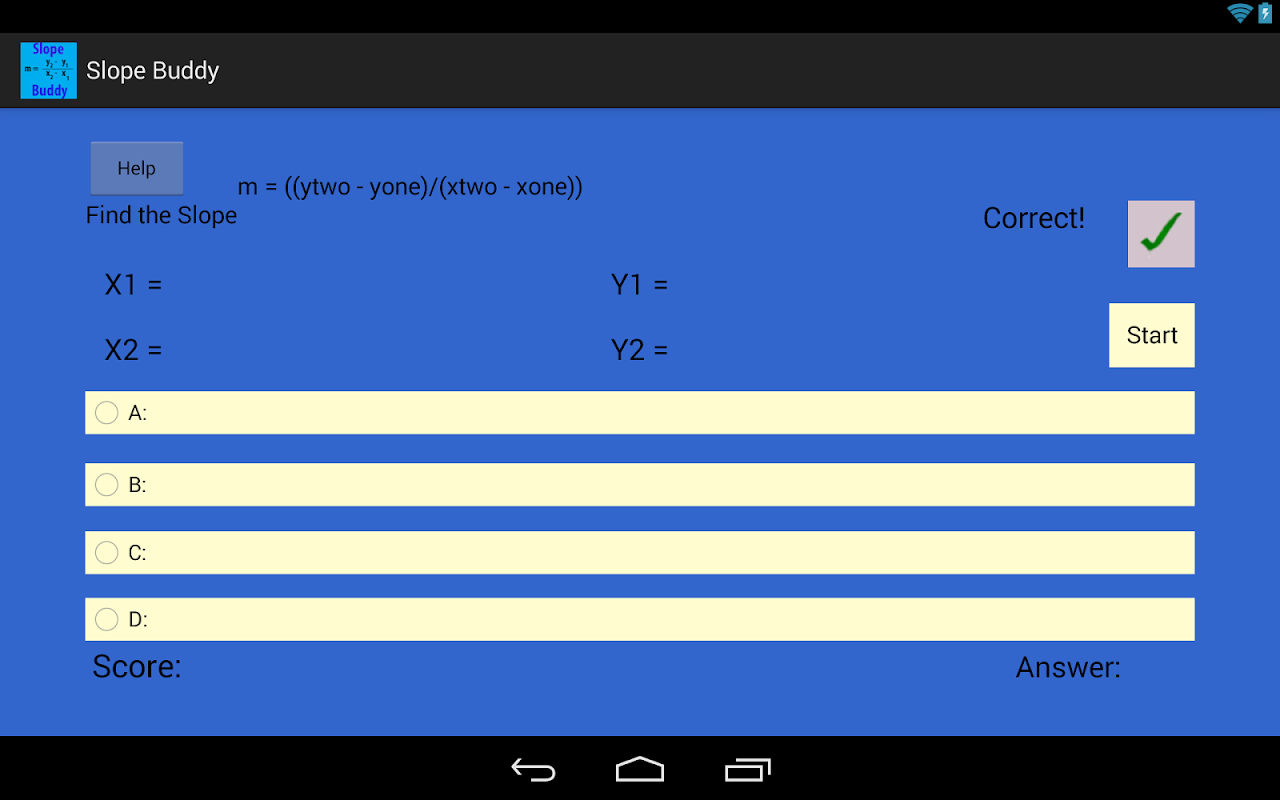 Slope Buddy is an app intended to help YOU find the slope of a line and retain the skill of finding a slope.