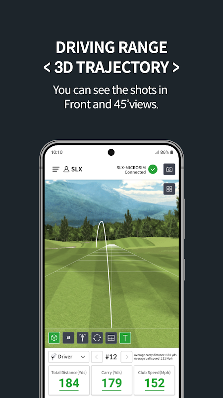 GPS-gesteuerte Distanzmessung. SLX Connect umfasst Golfsimulatorfunktionen zur Verwendung mit der gesamten Golfsimulator-Hardware von Swing Logic. Es bietet detaillierte Statistiken zu Schwungmetriken, Distanz, Schlägerkopfgeschwindigkeit, Ballgeschwindigkeit, Abflugrichtung (bei Verwendung des SLX NanoSensor) und 3D-Ansichten der Schläge während der Trainingseinheiten.
