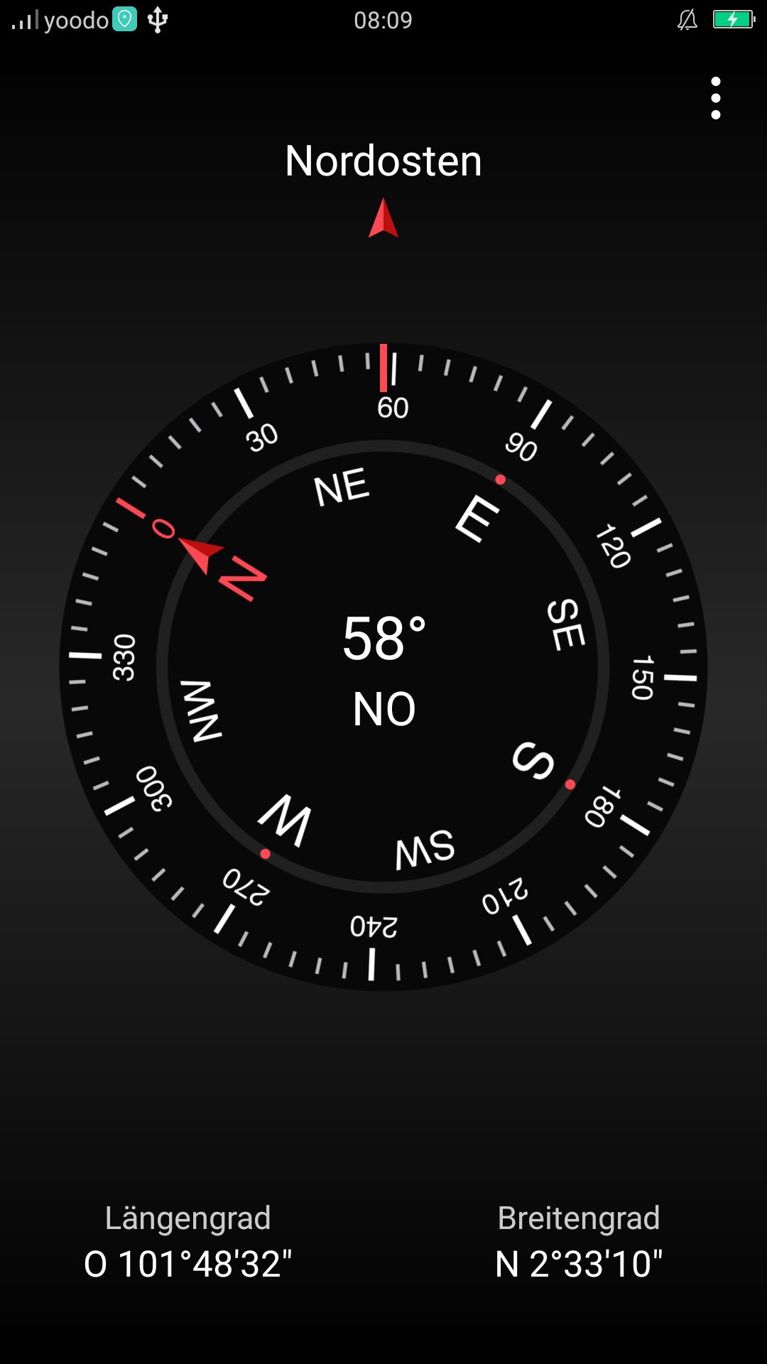 Diese Anwendung ist ein funktionaler und einfacher digitaler Kompass. Compass ist ein hervorragendes Werkzeug für Outdoor-Aktivitäten wie Wandern, Reisen, Angeln, Picknicken usw.